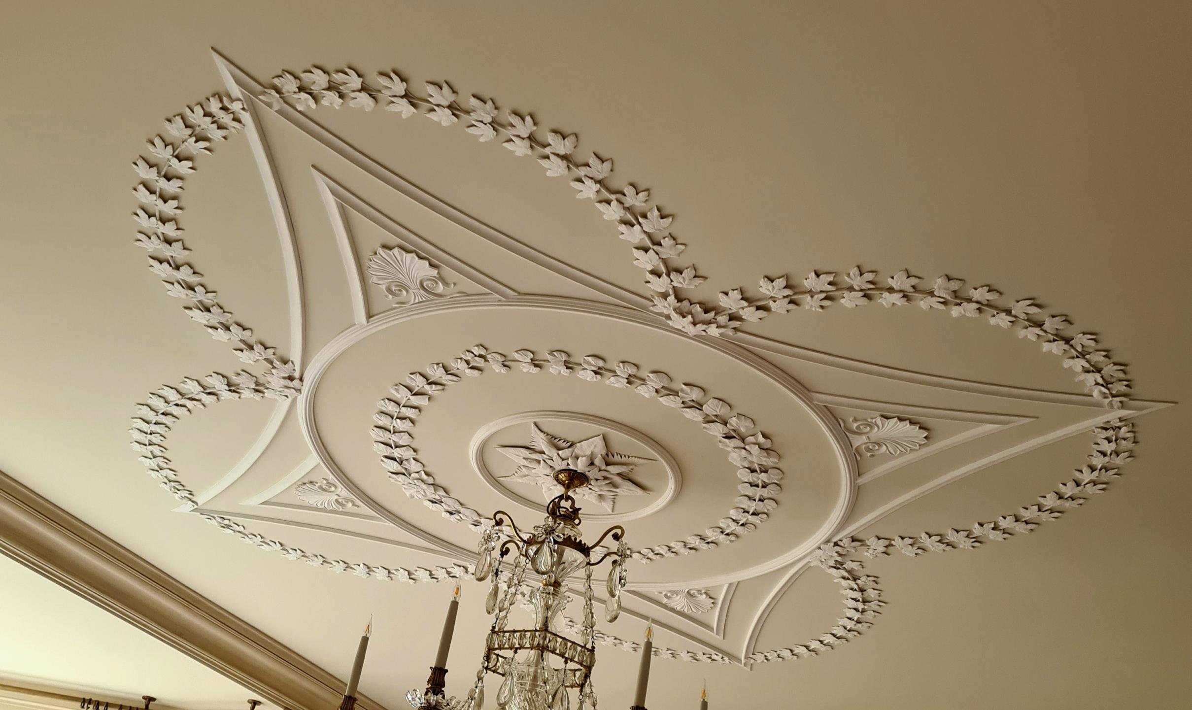 Decorative plasterwork ceiling - Bonnington House, Jupiter Artland, Edinburgh, Scotland.
